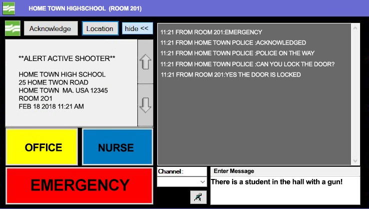 Once EMERGENCY is pushed all classrooms in the building receive the Notify Alert and 2-way chat opens.